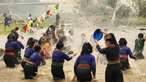 Vui Tết té nước với đồng bào dân tộc Lào ở Điện Biên