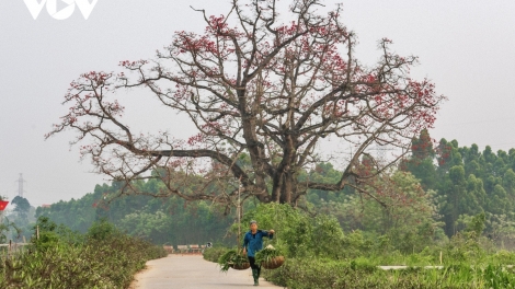 Ngắm hoa gạo nở đỏ rực trên những nẻo đường làng quê Bắc Bộ