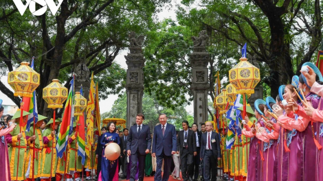 (VOV5) - Tổng Bí thư Tô Lâm cùng Phu nhân và Tổng thống Pháp Emmanuel Macron và Phu nhân thăm, tìm hiểu văn hóa Việt Nam tại Văn Miếu - Quốc Tử Giám.