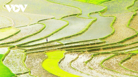 (VOV5) - Tháng 5 mùa nước đổ, khi cơn mưa rào đầu tiên mang nước về trên những thửa ruộng bậc thang Mù Cang Chải, ấy là báo hiệu mùa của những thửa ruộng bậc thang khô nứt nẻ trở mình đón nước. Mùa nước đổ là mùa cấy duy nhất trong năm ở Mù Cang Chải.