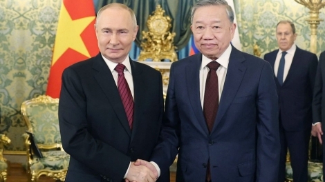 (VOV5) - Tổng Bí thư Tô Lâm và Phu nhân cùng Đoàn đại biểu cấp cao Việt Nam có chuyến thăm chính thức Nga và dự Lễ kỷ niệm 80 năm Ngày Chiến thắng trong chiến tranh Vệ quốc vĩ đại, từ ngày 8/5 đến 11/5 theo lời mời của Tổng thống Vladimir Putin.