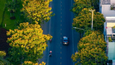 (VOV5) - Mỗi độ tháng 5, sắc rực rỡ của hoa phượng vàng phủ kín các con đường, biến phố biển Quy Nhơn (Bình Định) thành bức tranh thiên nhiên thơ mộng trong ngày hè.