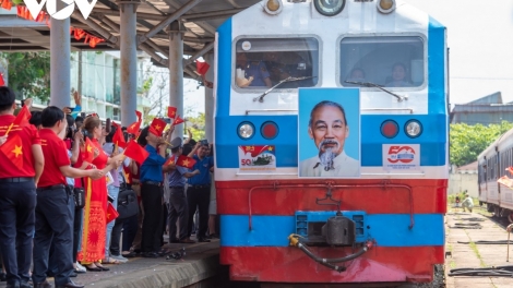 (VOV5) - Trưa 30/4, hai đoàn tàu Thống Nhất mang số hiệu SE1 và SE4 hội ngộ tại ga Đà Nẵng, tái hiện đầy cảm xúc những khoảnh khắc lịch sử 50 năm Ngày đất nước thống nhất.