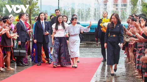 (VOV5) - Sáng 28/4, tại Hà Nội, bà Lê Thị Bích Trân, Phu nhân Thủ tướng Phạm Minh Chính và bà Ishiba Yoshiko, Phu nhân Thủ tướng Nhật Bản đến thăm Làng Văn hóa - Du lịch các dân tộc Việt Nam.