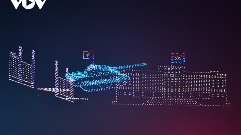 (VOV5) - 10.500 thiết bị bay không người lái (drone) thực hiện màn tổng duyệt đẹp mắt trước khi chính thức trình diễn ở đại lễ 30/4.