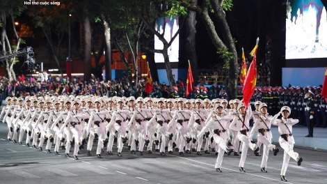 (VOV5) - Lễ Sơ duyệt cấp Nhà nước diễu binh, diễu hành có 38 khối của lực lượng vũ trang (quân đội, lực lượng dân quân 25 khối, lực lượng công an 13 khối), 12 khối diễu hành đại diện cho tổ chức quần chúng.