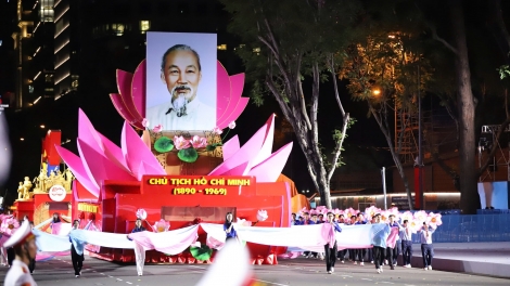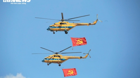 Trực thăng mang cờ đỏ thắm, tiêm kích xé gió trên bầu trời TP.HCM
