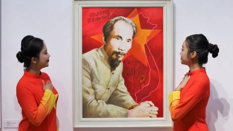 (VOV5) - Triển lãm giới thiệu 50 tác phẩm có giá trị nghệ thuật cao, ca ngợi vẻ đẹp quê hương đất nước, tinh thần chiến đấu kiên cường của dân tộc và khát vọng vươn lên của Việt Nam sau 50 năm non sông liền một dải.