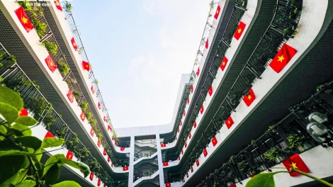 Cờ Tổ quốc nhuộm thắm từng góc phố, toà nhà những ngày tháng Tư lịch sử