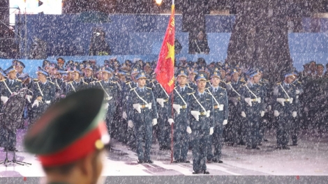 (VOV5) - Tối 25/4, hơn 13.000 chiến sỹ đội mưa hát trong buổi sơ duyệt cấp Nhà nước lễ diễu binh, diễu hành kỷ niệm 50 năm Ngày Giải phóng miền Nam, thống nhất đất nước.
