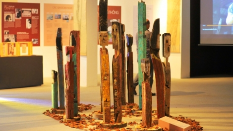 (VOV5) - Triển lãm "Nguồn cội" là chuyến du hành đi theo các bước chuyển lớn trong sự nghiệp của nghệ sĩ Tô Bích Hải, khi bà thử nghiệm với các chất liệu khác nhau như sơn dầu, than chì, điêu khắc gỗ...