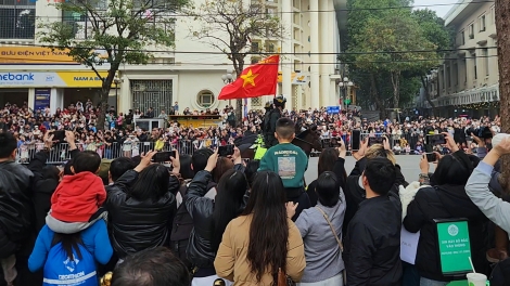 (VOV5) - Trong buổi chiều 9/3 tại phố đi bộ Hồ Gươm, khán giả không chỉ được thưởng thức những bài biểu diễn của kỵ binh, cảnh khuyển mà còn trầm trồ trước những màn trình diễn khí công, trấn áp tội phạm của các chiến sĩ cảnh sát.