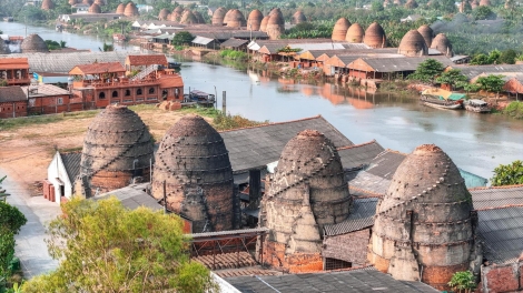 (VOV5) - Làng nghề gạch, gốm đỏ ở huyện Mang Thít (tỉnh Vĩnh Long) với lịch sử khoảng 100 năm, từ xa hiện lên như những tòa tháp cổ kính, soi bóng bên dòng sông Cổ Chiên.