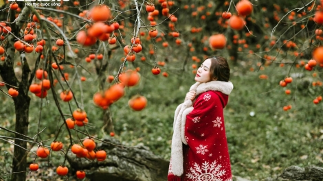(VOV5) - Những ngày chính đông, rất nhiều người tìm đến khu vườn tại Mộc Châu, Sơn La để ngắm những cây hồng trĩu quả, đẹp lãng mạn như những khu vườn trong truyện cổ tích.