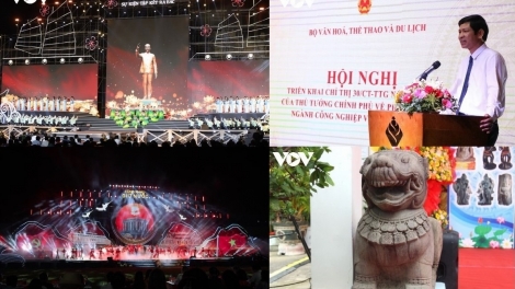 (VOV5) - Nhiều sự kiện văn hóa diễn ra tuần qua, trong đó nổi bật là Hội nghị triển khai Chỉ thị 30 của Thủ tướng Chính phủ về phát triển công nghiệp văn hóa; Cầu truyền hình kỷ niệm 70 năm sự kiện tập kết ra Bắc tại TP. Hải Phòng; Đêm nghệ thuật “Cùng nhau giữ nước” và 2 tượng sư tử đá thành Đồ Bàn được công nhận bảo vật quốc gia.