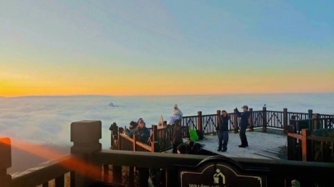 (VOV5) - Đỉnh Fansipan, nhiệt độ xuống dưới 0 độ C đã khiến băng giá xuất hiện, tạo thành một lớp mỏng trên cây cối và bề mặt xung quanh.