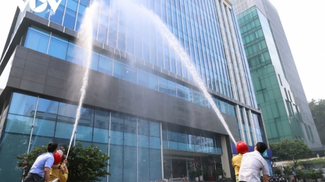 (VOV5) - Thực tập phương án chữa cháy cứu hộ cứu nạn tại tòa nhà VOV, tình huống giả định đưa ra là hỏa hoạn xảy ra ở tầng hầm tòa nhà sau đó lan rộng ra các khu vực xung quanh.