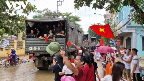 Người dân vùng lũ Yên Bái bịn rịn chia tay bộ đội