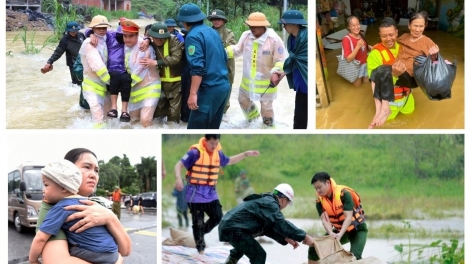 Những hình ảnh đẹp ấm tình quân dân trong bão lũ