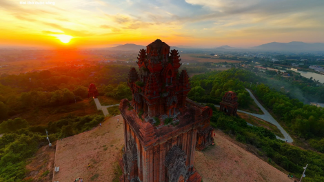(VOV5) - Dưới bình minh, tháp Bạc (tháp Bánh Ít) mang dấu ấn ngàn năm của Vương triều Chăm Pa tại Bình Định hiên ngang, sừng sững trên đỉnh đồi.