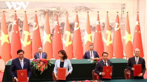 (VOV5) - Tổng Bí thư, Chủ tịch nước Tô Lâm và Tổng Bí thư, Chủ tịch Trung Quốc Tập Cận Bình chứng kiến lễ ký các văn kiện hợp tác giữa hai nước.