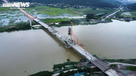 (VOV5) - Sau hơn 2 năm thi công, cầu dây văng một mặt phẳng lớn nhất Bắc Giang đạt 70% phần đường dẫn, phần cầu đạt 95% khối lượng công việc, dự kiến thông xe trước 2/9.
