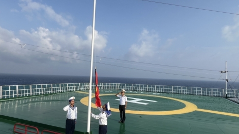 Các đảo, nhà giàn DK1, tàu trực trên biển treo cờ rủ tưởng nhớ Tổng Bí thư Nguyễn Phú Trọng