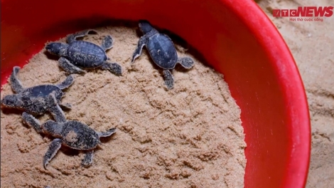 (VOV5) - 0h sáng 22/7, một ổ trứng rùa biển quý hiếm đã nở tại xã Nhơn Hải (Quy Nhơn, Bình Định) với số lượng 47 con.