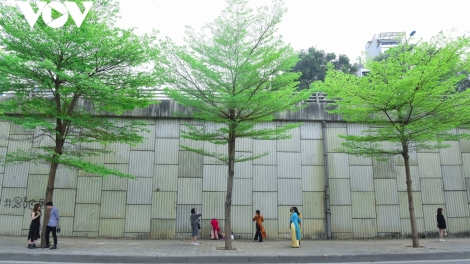 (VOV5) -Hàng cây bàng lá nhỏ thẳng tắp, xanh mơn mởn cạnh sông Tô Lịch đang trở thành địa điểm thu hút người dân Hà Thành đổ về dạo chơi, chụp ảnh.