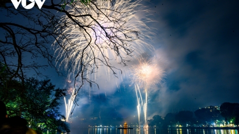 (VOV5) - Thời khắc chuyển giao giữa năm cũ và năm mới, rất nhiều người đã đổ về khu vực hồ Hoàn Kiếm để chiêm ngưỡng những chùm pháo hoa rực rỡ muôn màu.