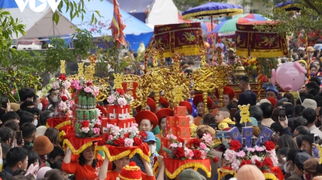 (VOV5) - Nét độc đáo và được mọi người dân háo hức chờ đợi nhất là hoạt động rước các cụ thượng thọ tròn 80, 90 và 100 tuổi lên miếu Tiên Công.