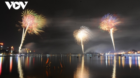 (VOV5) - Pháo hoa đã rực sáng trên bầu trời nhiều tỉnh, thành trong cả nước trong thời khắc chuyển giao năm cũ Nhâm Dần sang năm mới Quý Mão.