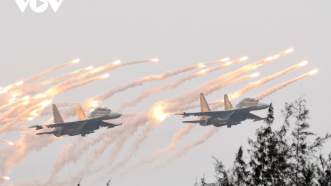 (VOV5) - Những chiếc Su-30MK2 hiện đại nhất của Việt Nam đã có những bài trình diễn bay mãn nhãn vào sáng 8/12 tại buổi khai mạc Triển lãm Quốc phòng lần đầu tiên được tổ chức tại Hà Nội.