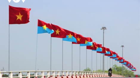 (VOV5) - Tại những địa danh nổi tiếng, di tích lịch sử và trên những nẻo đường ở tỉnh Quảng Trị, cờ hoa tràn ngập mang lại không khí vui tươi, hân hoan trước ngày hội lớn.