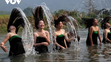 (VOV5) - Áp Hô Chiêng - Lễ hội Gội đầu bên suối thường diễn ra vào chiều 30 tết là nghi lễ rửa trôi những vất vả, điều không may mắn, xui xẻo của năm cũ.