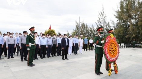 (VOV5) - Trong chuyến thăm và làm việc tại Khánh Hòa, Thủ tướng Chính phủ Phạm Minh Chính đã dâng hương, dâng hoa tại khu tưởng niệm chiến sĩ Gạc Ma.