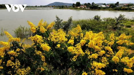 (VOV5) -Cứ mỗi độ thu về, khi tiết trời ở Gia Lai se lạnh là lúc hoa muồng bung vàng rực rỡ giữa những vạt chè xanh mướt ở xã Bàu Cạn, huyện Chư Prông.