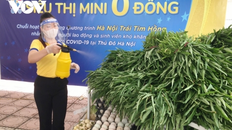 (VOV5) - “Siêu thị mini 0 đồng - Hà Nội trái tim hồng’’ mở cửa sẽ phục vụ cho gần 1.000 người lao động, sinh viên nghèo, sinh viên bị mắc kẹt tại ký túc xá bị ảnh hưởng do COVID-19.
