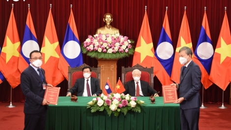 Hình ảnh lễ đón và hội đàm giữa lãnh đạo Việt Nam và Tổng Bí thư, Chủ tịch nước Lào
