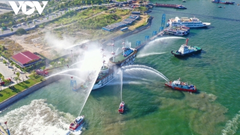Diễn tập quy mô lớn phương án chữa cháy tàu du lịch trên vịnh Hạ Long