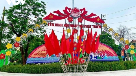(VOV5) -Trên các tuyến đường, nơi công sở, từ thành thị đến các bản làng vùng cao Tây Bắc đã trang hoàng cờ hoa rực rỡ, đón chào ngày hội lớn của dân tộc.