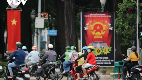 (VOV5) - Những ngày này, khắp phố phường ở TPHCM đều ngập tràn cờ hoa, pa-nô, áp phích rực rỡ với những khẩu hiệu hướng về ngày bầu cử đại biểu Quốc hội và HĐND các cấp.