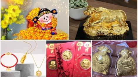 (VOV5) - Dịp vía Thần Tài năm nay, nhiều sản phẩm vàng và mạ vàng được tung ra thị trường, trong đó linh vật trâu vàng được nhiều người tìm mua bởi năm nay là năm Tân Sửu.