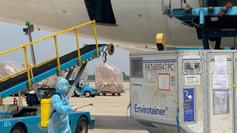 (VOV5) - Trưa 24/2, lô vaccine phòng dịch COVID-19 đầu tiên đã về tới Việt Nam qua Cảng hàng không quốc tế Tân Sơn Nhất – TP.HCM.