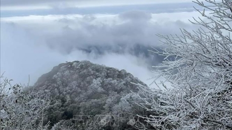 (VOV5) - Sáng 8/1/2021, nhiệt độ đo được tại đỉnh núi Phia Oắc, xã Thành Công, huyện Nguyên Bình (Cao Bằng) là -9 độ C, làm xuất hiện hiện tượng băng giá phủ kín cành cây và mặt đất.