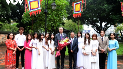 (VOV5) -Sáng 17/11, nhân dịp kỷ niệm Ngày Nhà giáo Việt Nam (20/11), Đại sứ Mỹ tại Việt Nam Daniel J. Kritenbrink đã đến thăm Văn Miếu - Quốc Tử Giám.