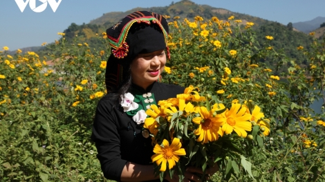 (VOV5) -Không chỉ Tây Nguyên mới nhiều dã quỳ, du khách đến Điện Biên cũng sẽ ngỡ ngàng vì cả không gian rực lên sắc vàng của loài hoa dại này.