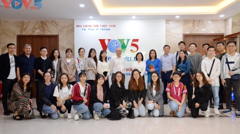 (VOV5) - Sáng 9 tháng 10, Ban Đối ngoại VOV5 cùng Học viện Báo chí và Tuyên truyền đã cùng tổ chức buổi giao lưu gặp mặt với các sinh viên Khoa Quan hệ Quốc tế của trường.