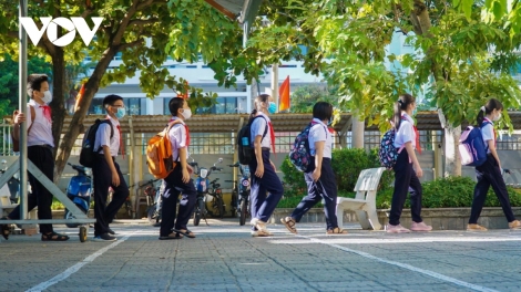 (VOV5) -Sáng 14/9, học sinh 2 bậc THCS và THPT ở thành phố Đà Nẵng đã trở lại trường sau 1 tuần phải học trực tuyến ở nhà vì thực hiện giãn cách phòng, chống dịch bệnh Covid-19.
