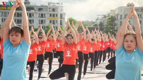 (VOV5) - 3000 người cùng tham gia trình diễn các động tác yoga dẻo dai, uyển chuyển tại TP Hạ Long nhân Ngày Quốc tế Yoga - 21/6 hàng năm.